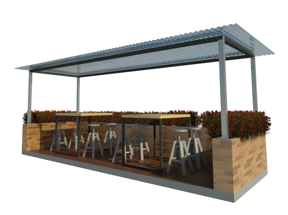 Supply and installation of mod wood planter boxes to the length of the parklet with timber framing system internally. Supply and installation of mod wood side panels to the two ends of the parklet.